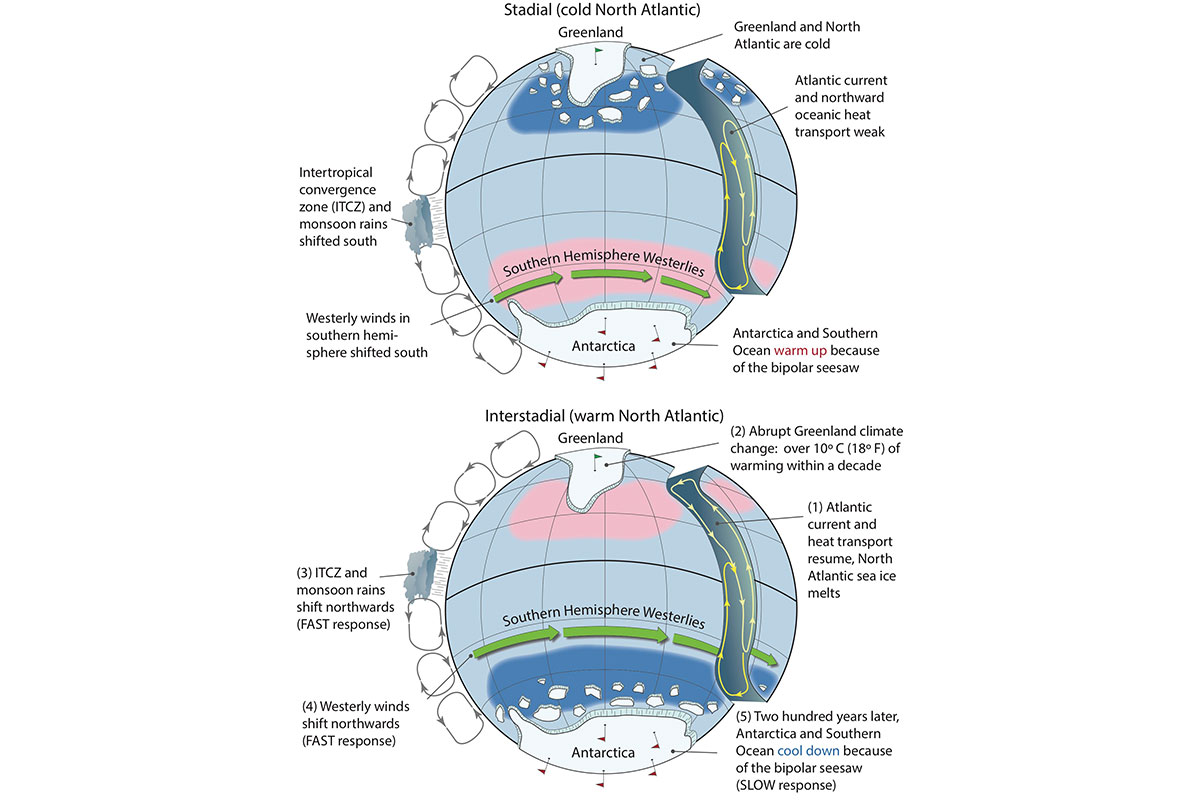 Christo Buizert, Michael Sigl, Mirko Severi, Bradley R. Markle, Justin J. Wettstein, Joseph R. McConnell, Joel B. Pedro, Harald Sodemann, Kumiko Goto-Azuma, Kenji Kawamura, Shuji Fujita, Hideaki Motoyama, Motohiro Hirabayashi, Ryu Uemura, Barbara Stenni, Frédéric Parrenin, Feng He, T.J. Fudge, Eric J. Steig. Abrupt Ice Age Shifts in Southern Westerlies and Antarctic Climate Forced from the North. Nature, 2018. DOI: 10.1038/s41586-018-0727-5